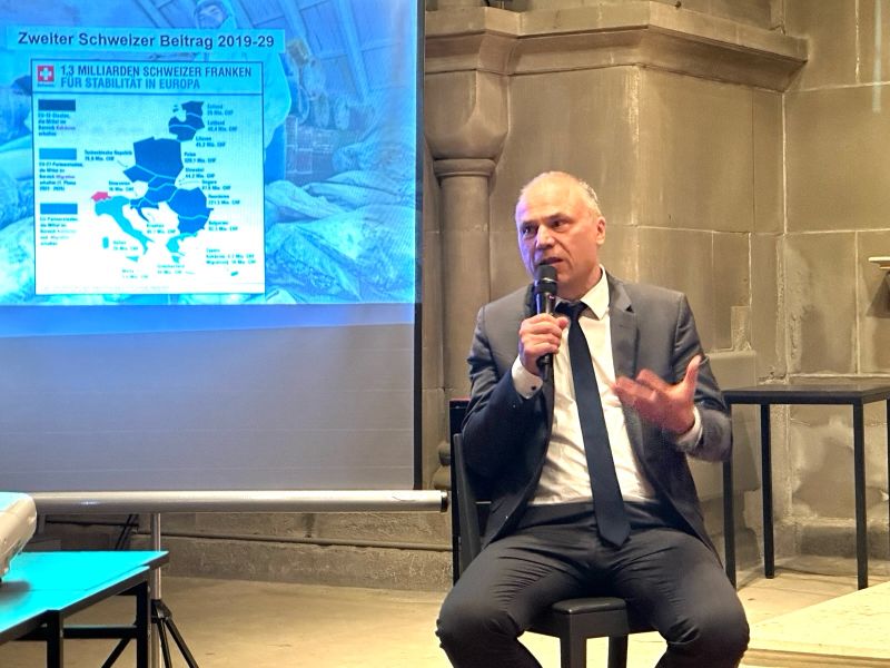 Hotel Kreuz Bern (Zeughausgasse 39, 3011 Bern). Nach einem Rück- und Ausblick von Daniel Birchmeier (Staatssekretariat für Wirtschaft SECO), diskutierten unsere Gäste über die Umsetzung der Programme, die Bedeutung der Kohäsionsbeiträge für die Beziehungen der Schweiz zu den Empfängerländern, die Bedeutung für die Schweizer Europapolitik sowie die Bedeutung der Kohäsionsbeiträge für die Empfängerländer.